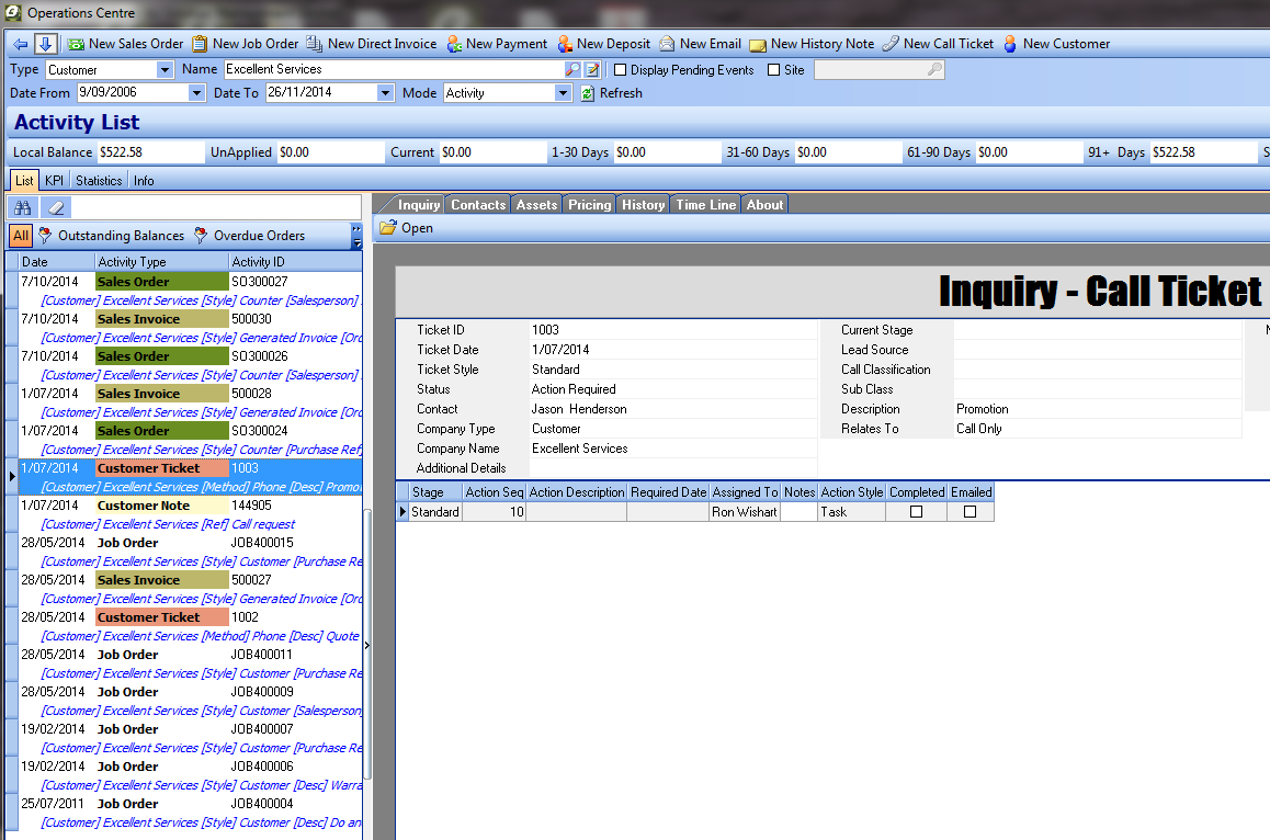 Creating call centre tickets linked to jobs, sales orders, customers or suppliers