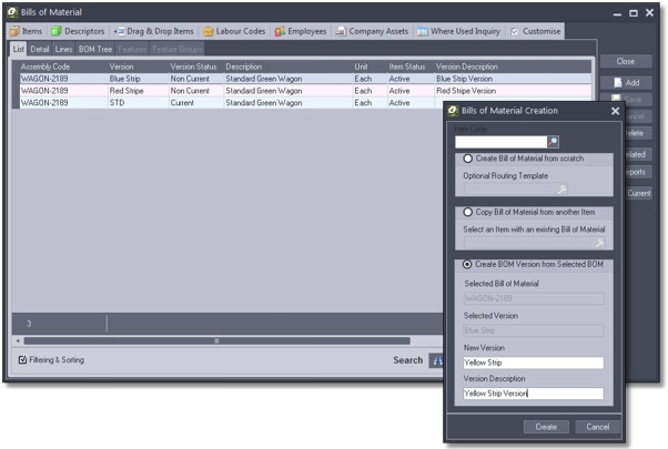 Adjust your Bill of Materials as your manufacturing processes change by creating and choosing from multiple versions. Save time by automatically sending an Assembly Receipt to a related job order and by setting a default close date with the new ‘Default Assemble Close Date’ rule. Enjoy greater clarity with a range of new selection and filtering fields.