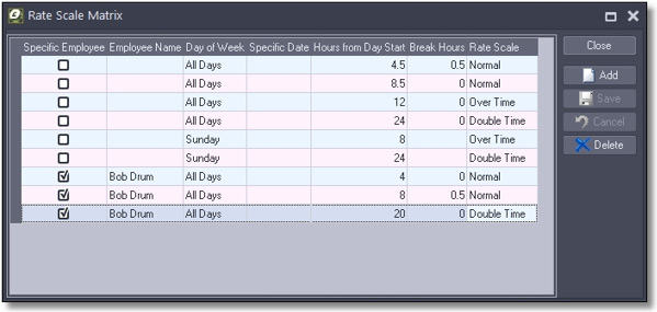 Remove the hassle of timesheet interpretation with the new Rate Scale Matrix screen. Set up rules for interpreting timesheets such as overtime pay after 9 hours, or time and a half pay for a specific date. Improve your labour costing abilities while reducing the time you spend interpreting and administering timesheets.